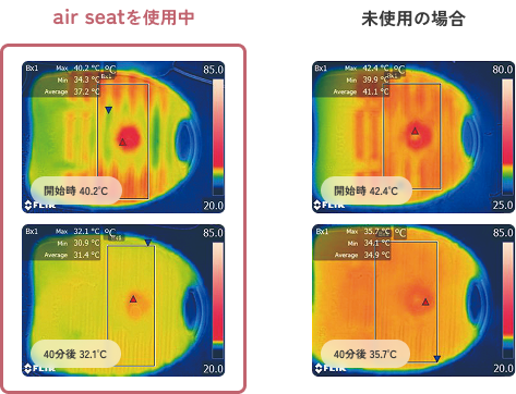 air seatを使用することにより、約1.5倍速く温度を下げることができました。※当社比