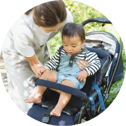 気温が35℃だと地面の温度は57℃、ベビーカーの赤ちゃんの頭 の位置は、およそ50℃となります。熱中症や脱水症はもちろん 湿気の多さから汗疹などの乳児湿疹になる恐れがあります。